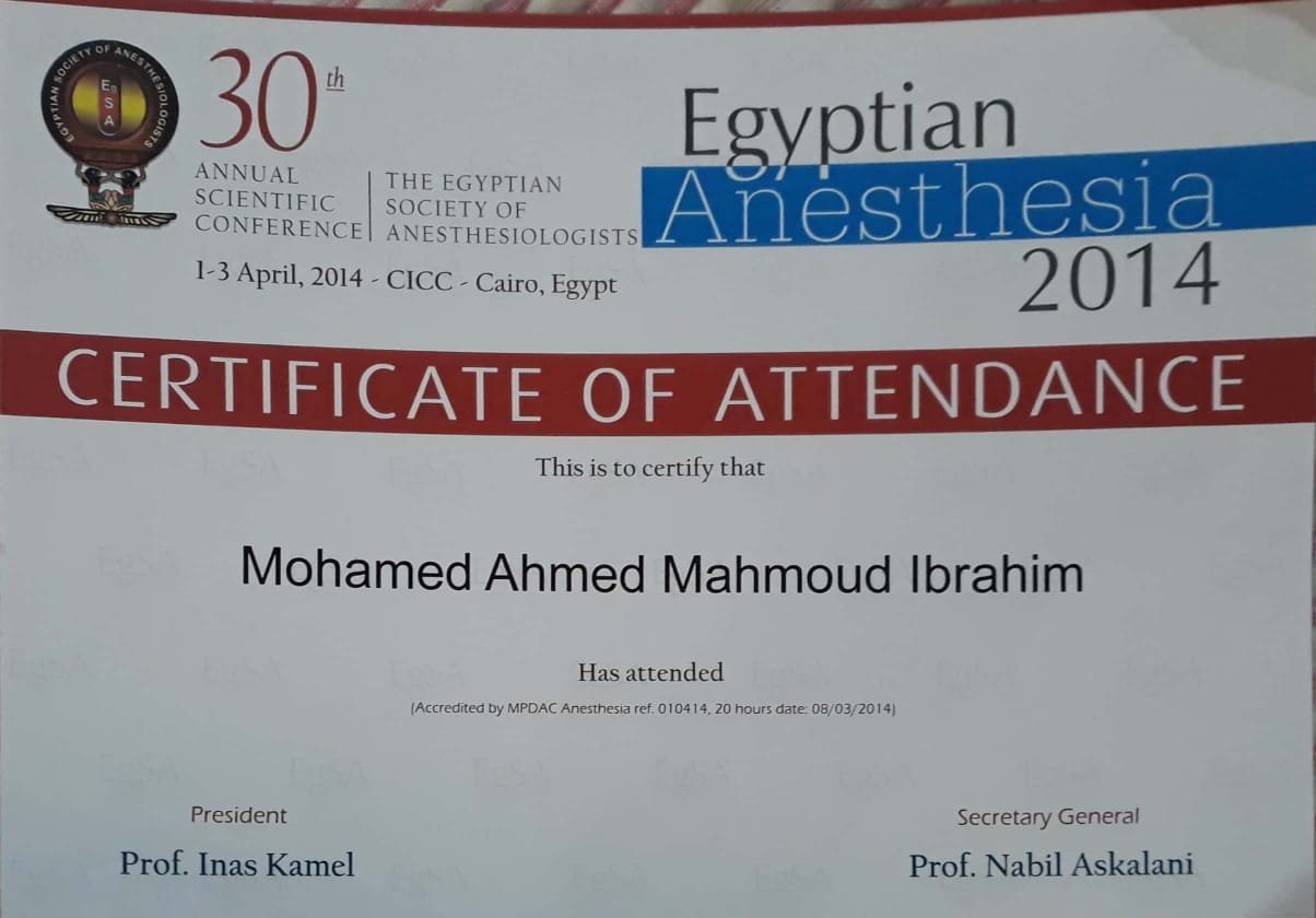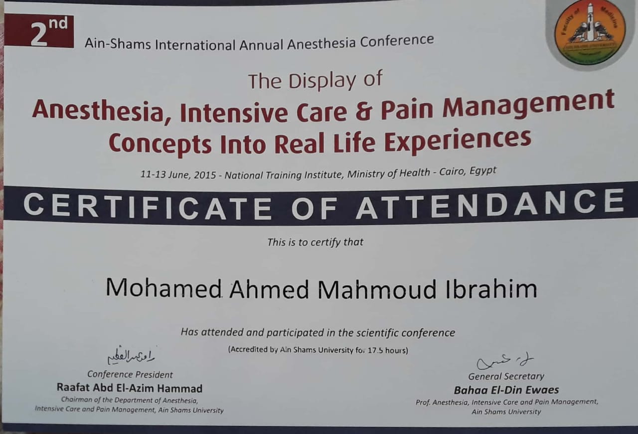 | التخصص العام | التخدير والعناية المركزة |