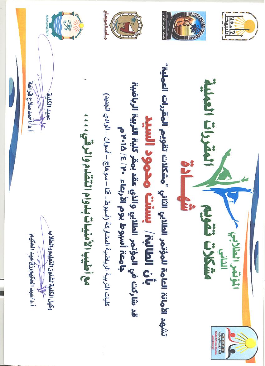 Second student conference for student activities and academic reality, Faculty of Physical Education, Assiut University, April 2015
