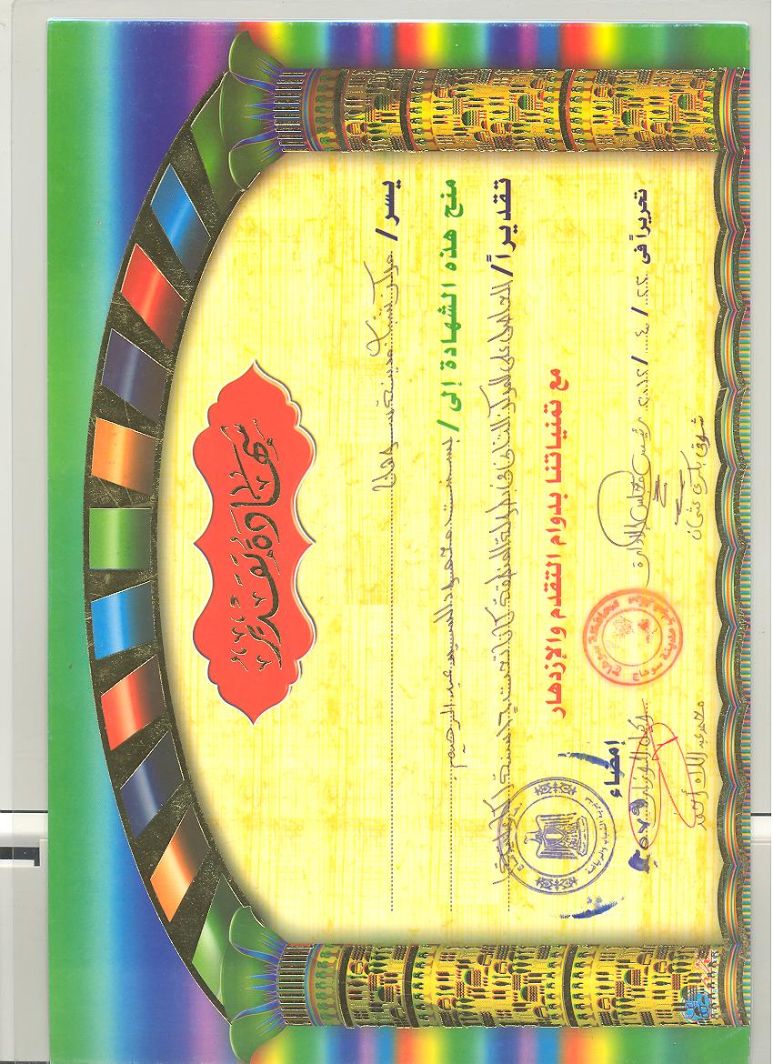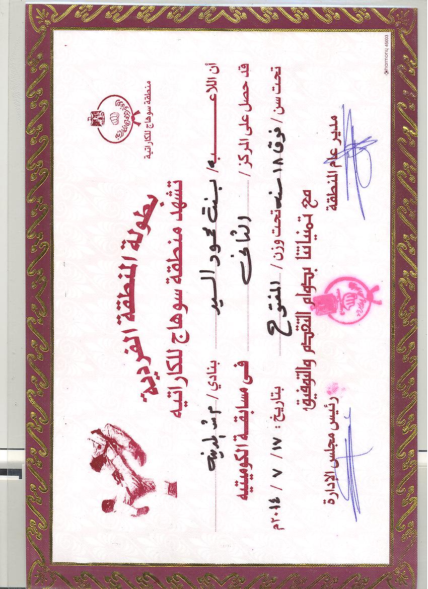 Black belt (Dan 1) of the Egyptian Karate Union 14/12/2007