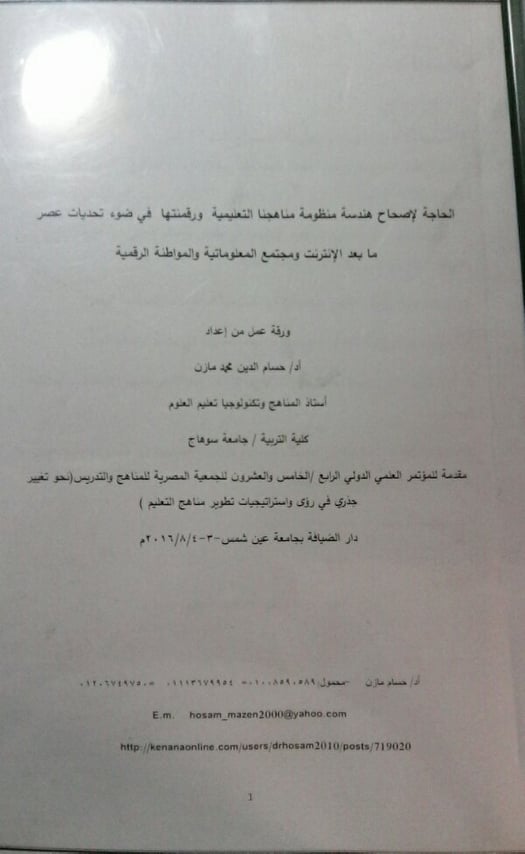 مؤتمر الجمعية المصرية للمناهج والمشاركة بورقة عمل مازن