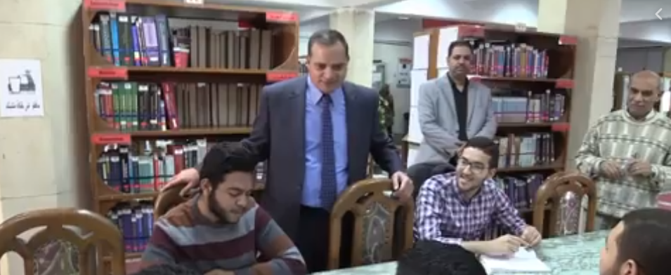 فى زيارة عاجلة لوفد من وزارة التعليم العالى برفقة السيد أ.د / أحمد عزيز- رئيس الجامعة والسيد أ.د / مصطفى عبد الخالق - عميد الكلية وبعض السادة عمداء الكليات والسيد وكيل الوزارة / أشرف القاضى - أمين عام الجامعة لمكتبة الكلية للإطلاع على سير العمل بالمكتبة وما أنجز من خدمات وأعمال بالمكتبة.