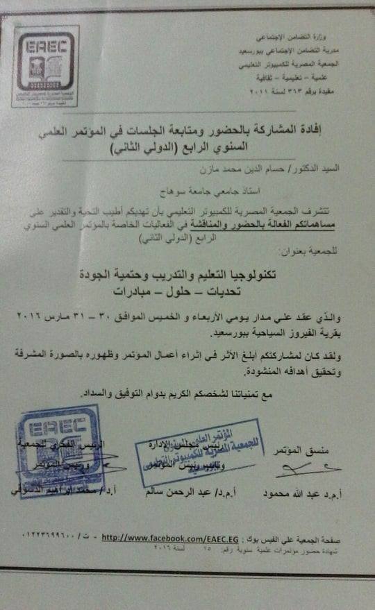 مؤتمر الكمبيوتر التعليمي والمشاركة بورقة عمل