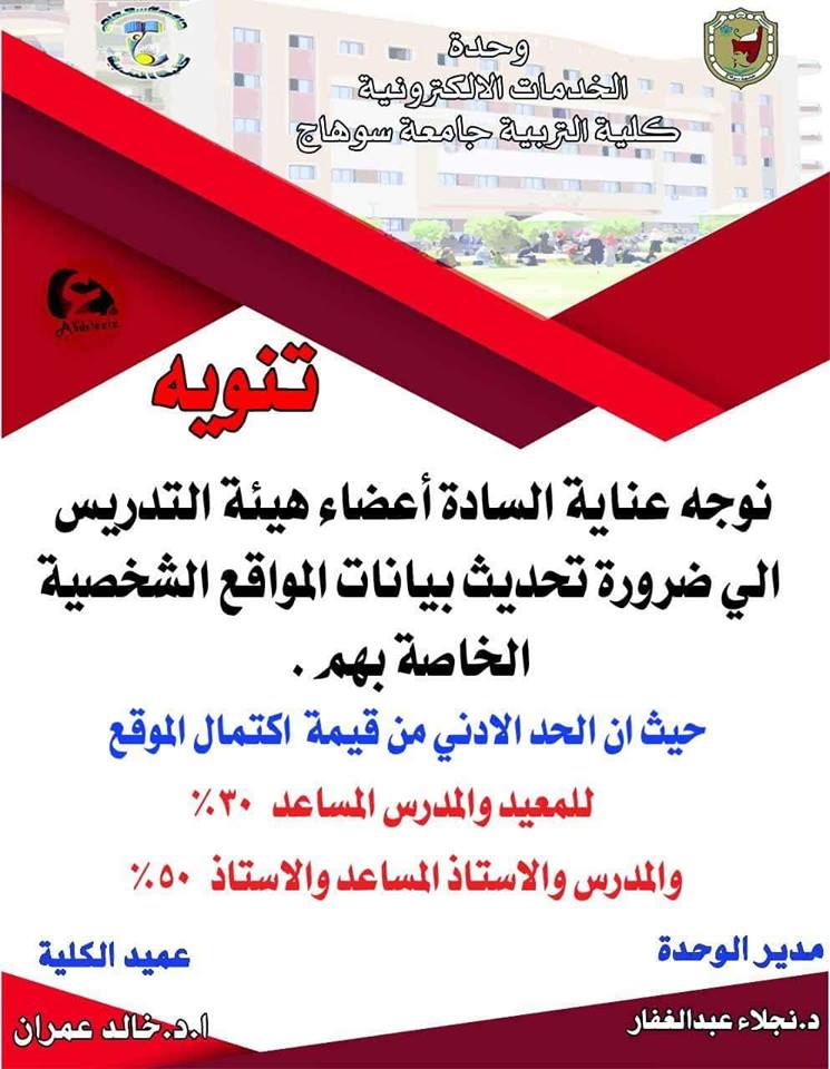 تعلن كلية التربية جامعة سوهاج عن إقامة ورشة عمل تدريبية لتفعيل البريد المؤسسي