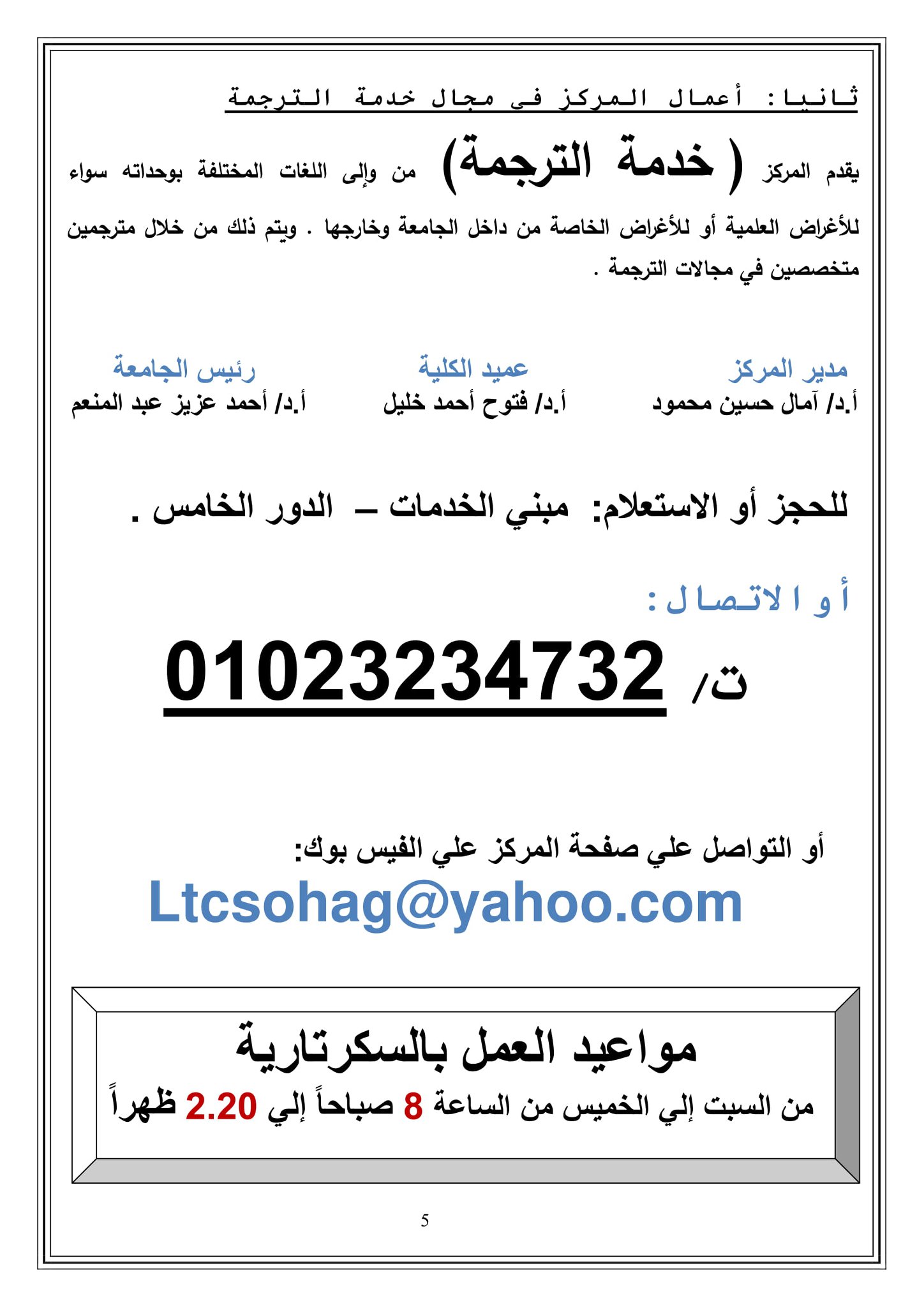 مركز اللغات والترجمة - كلية الآداب بمبنى الخدمات الدور الخامس بالجامعة القديمة ت/ 01023234732