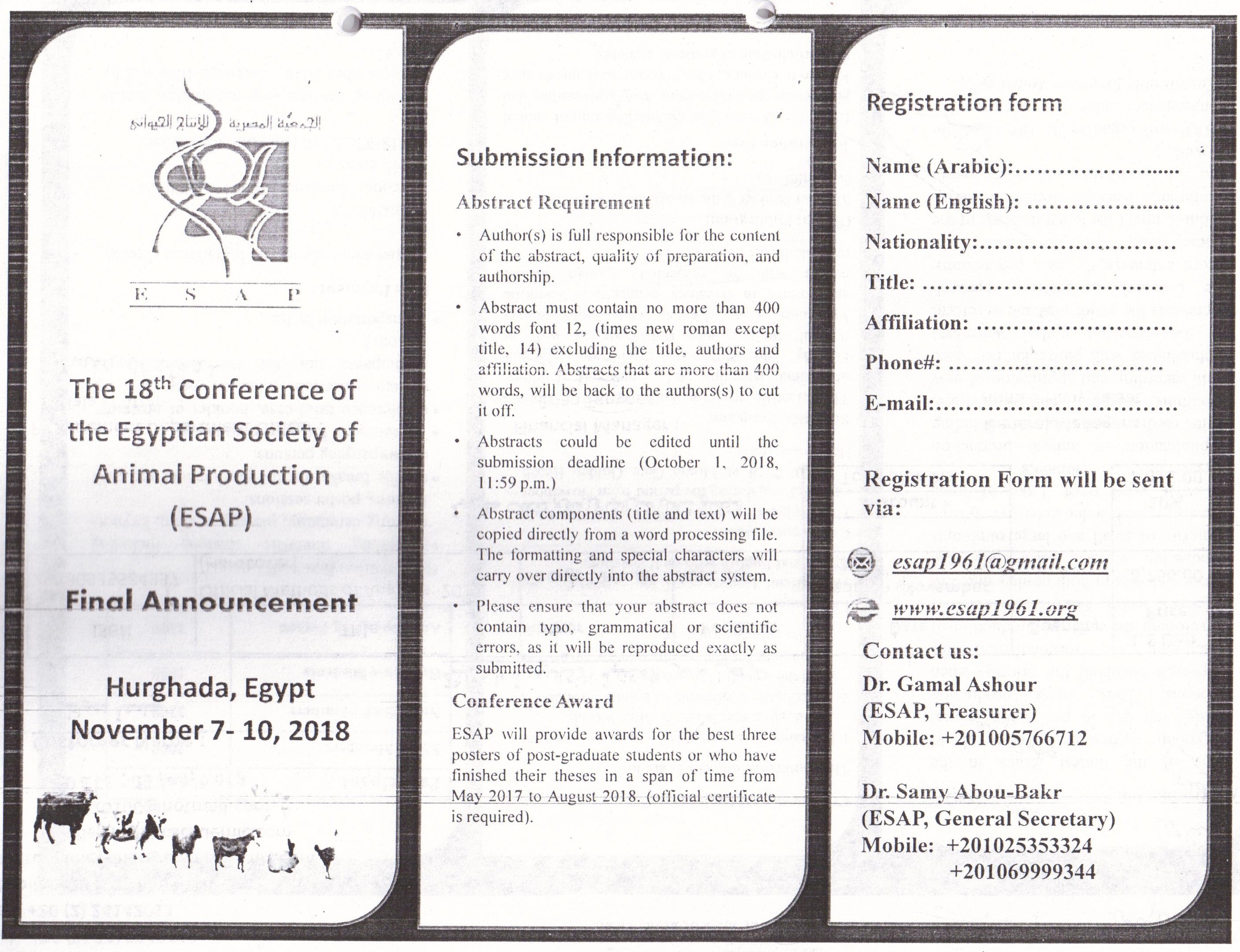 18th Conference of the Egyptian Society of Animal Production