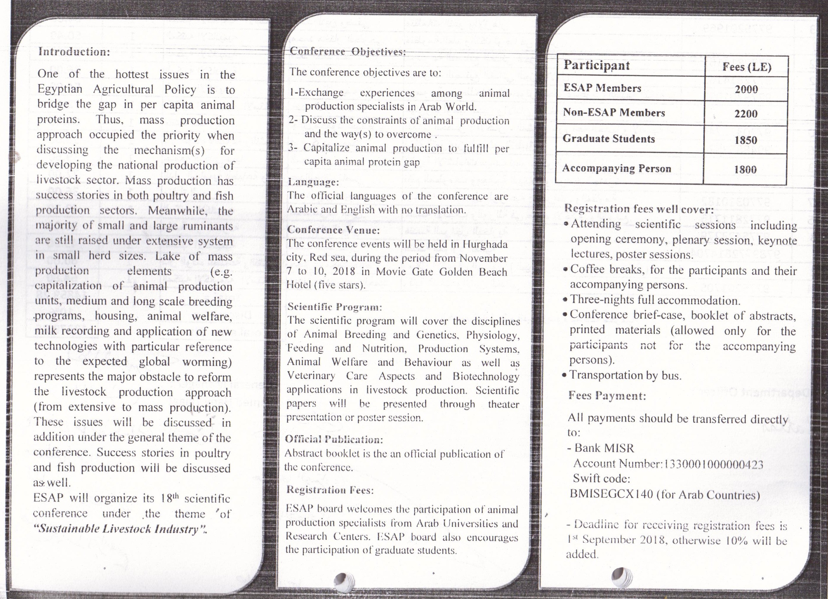 للمؤتمر المصري الثامن عشر للانتاج الحيواني
