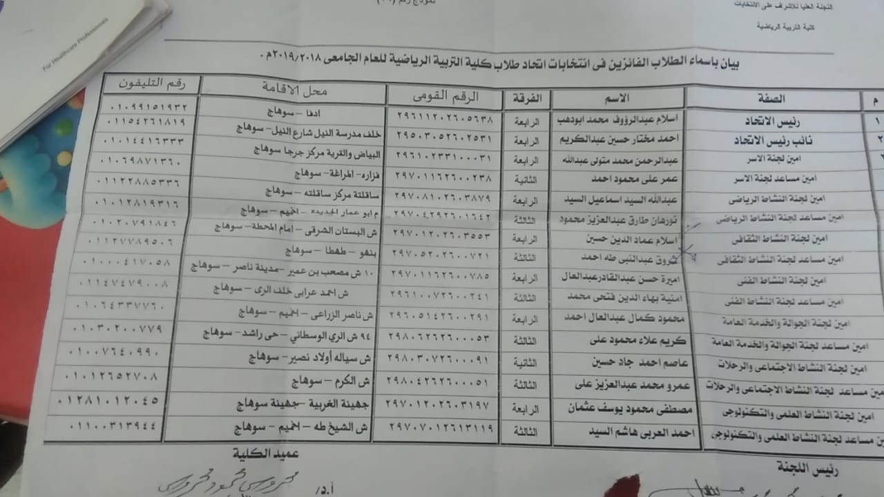 يسعدني أن أقدم لكم كشف بأسماء وبيانات مجلس اتحاد طلاب كلية التربية الرياضية 2018 - 2019م المنتخب.. وأدعوكم للتواصل والتعاون معه لتفعيل الأنشطة التي يقوم بها الاتحاد لخدمة طلاب الكلية ..
