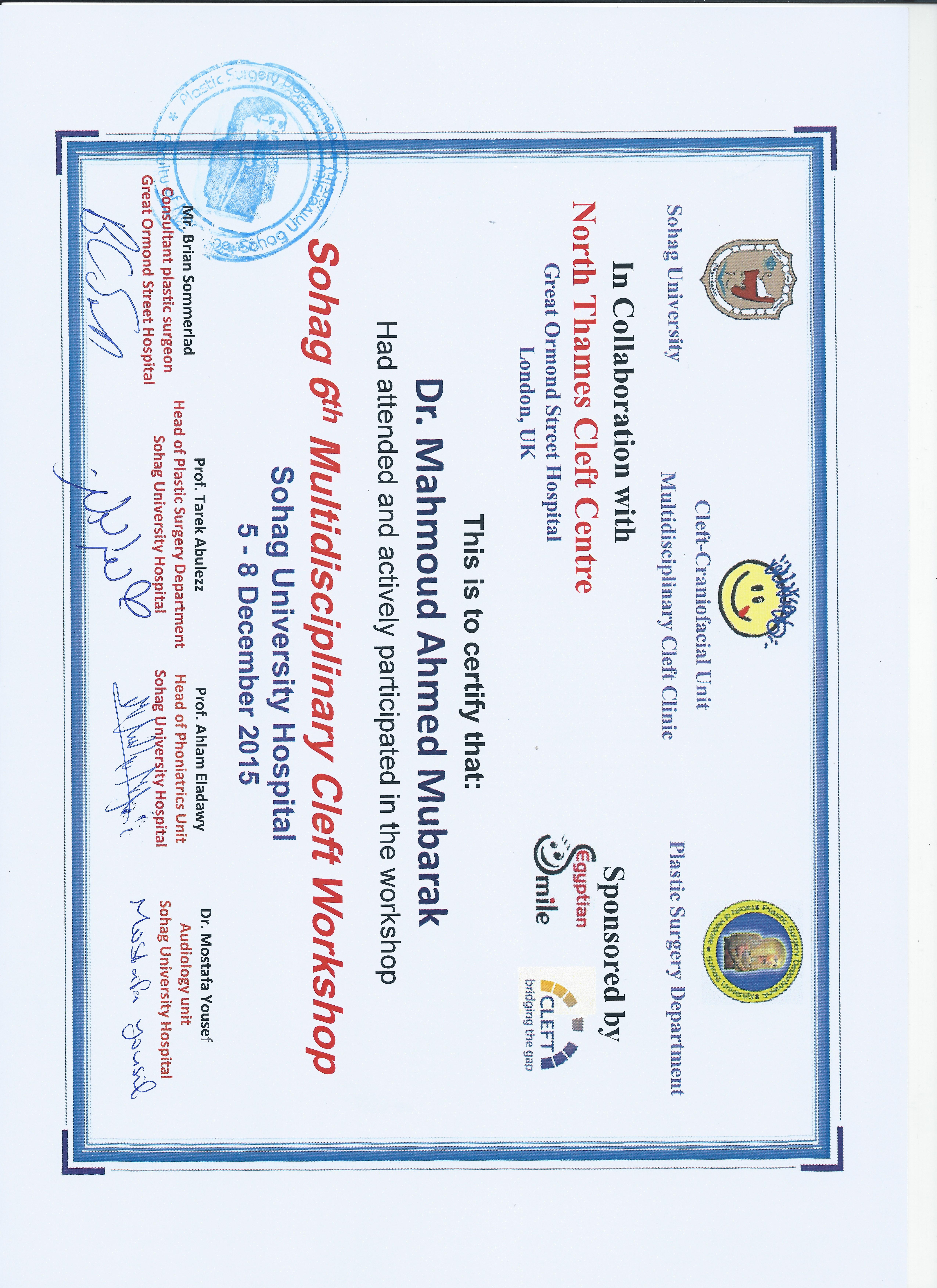 It will be held at plastic surgery department ,sohag University under supervision of proff. Brian sommerlad at