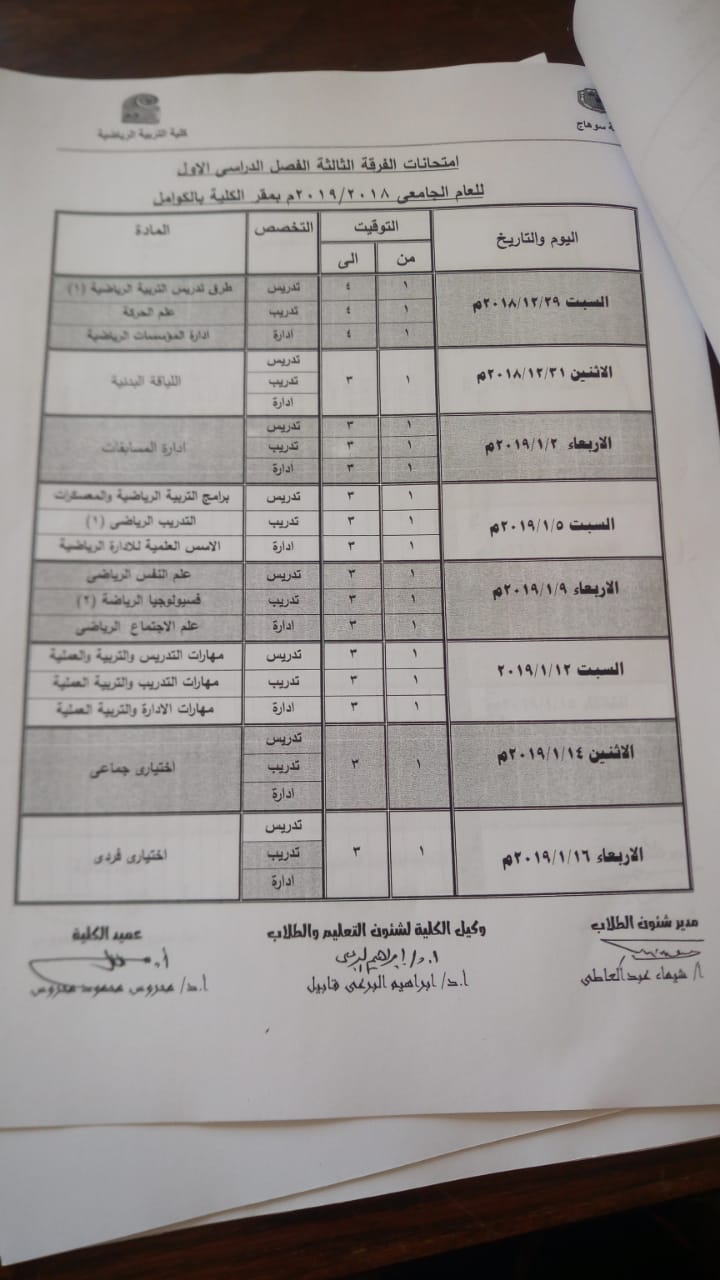 معيد - معيدة بكلية التربية الرياضية - قسم مناهج وطرق التدريس