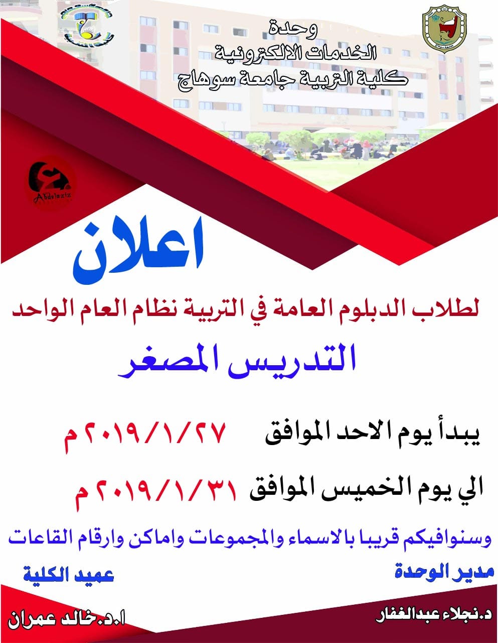 بدء من يوم الأحد الموافق ٢٧ بناير ٢٠١٩م