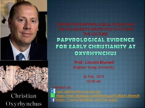 ، والذي كان "حول الدلائل البردية على الوجود الباكر للمسيحية في أوكسيرنخوس" والتي حاضر فيه الأستاذ الدكتور / Blumell Lincoln وكانت فاعليات السيمينار باللغة الإنجليزية.