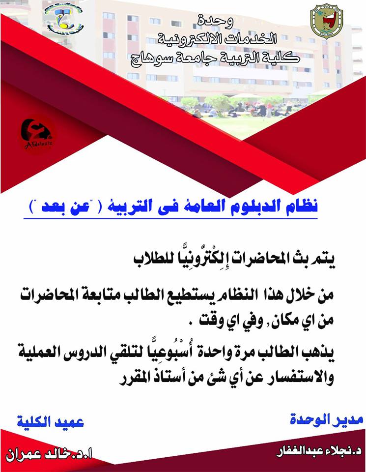 تعلن كلية التربية جامعة سوهاج عن تقديم خدمة متميزة لطلاب الدبلوم العامة في التربية نظام العام الواحد