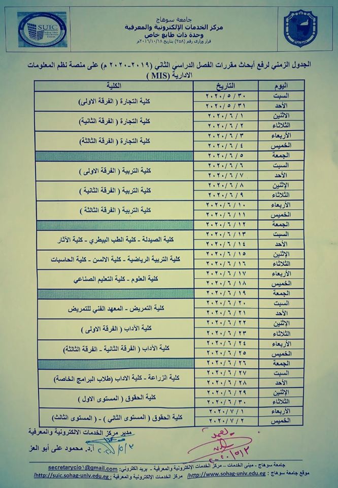 رفع الابحاث سيبدأ من يوم 30 مايو طبقا للجدول الزمني
