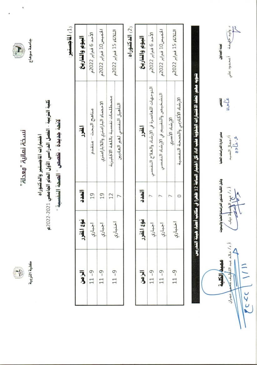 جداول اختبارت الماجستير والدكتوراه لائحة قديمة وجديدة الفصل الدراسي الأول 2022م