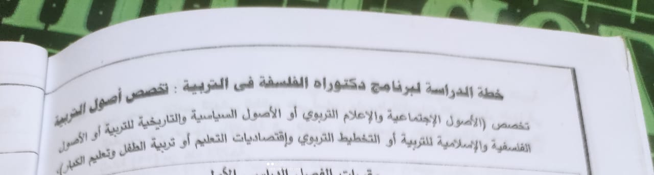 مجالات أصول التربية بكلية التربية جامعة سوهاج لدرجة الماجستير