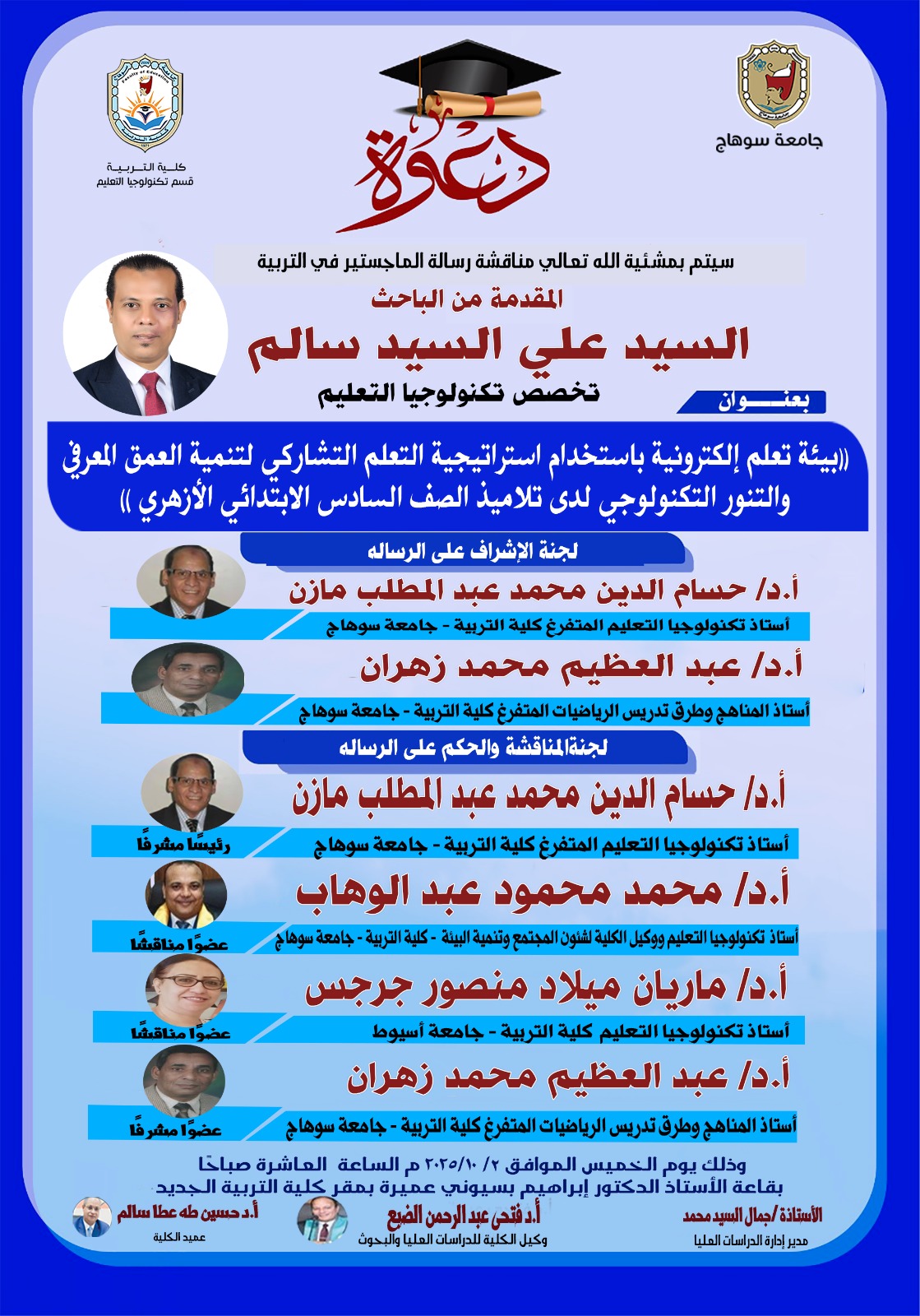 مناقشة رسالة ماجستير بقسم تكنولوجيا التعليم - تربية سوهاج