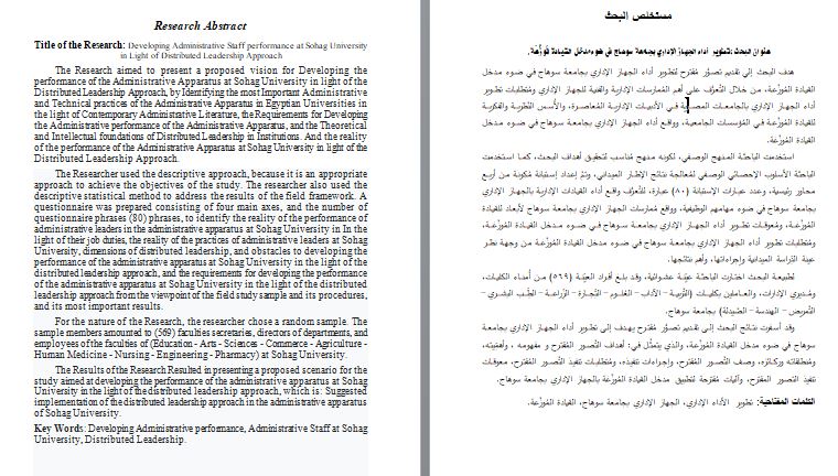 Title of the Research: Developing Administrative Staff performance at Sohag University in Light of Distributed Leadership Approach