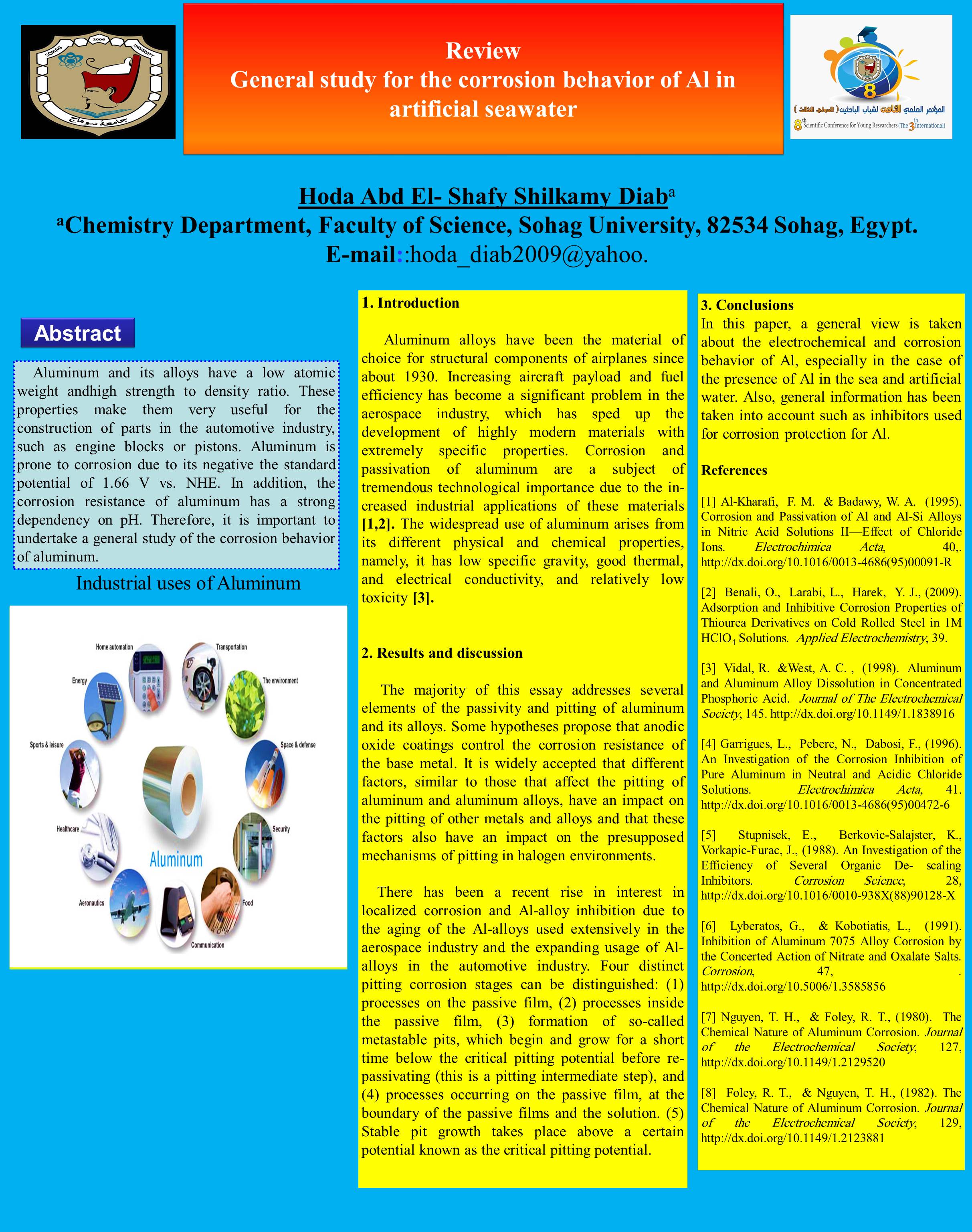 Aluminum and its alloys have a low atomic weight and high strength to density ratio. These properties make them very useful for construction of parts in the automotive industry, such as engine blocks or pistons. Aluminum is prone to corrosion due to its negative standard potential of 1.66 V vs. NHE. In addition, the corrosion resistance of aluminum has a strong dependency on pH. Therefore, it is important to undertake a general study of the corrosion behavior of aluminum.