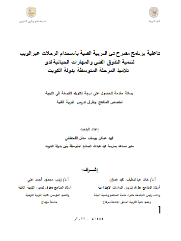 عنوان البحث: فاعلية برنامج مقترح في التربية الفنية باستخدام الرحلات المعرفية عبرالويب لتنمية التذوق الفني والمهارات الحياتية لدى