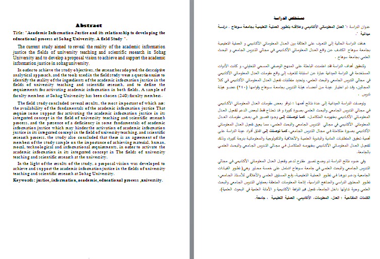 Title: "Academic Information Justice and its relationship to developing the educational process at Sohag University. A field Study ".