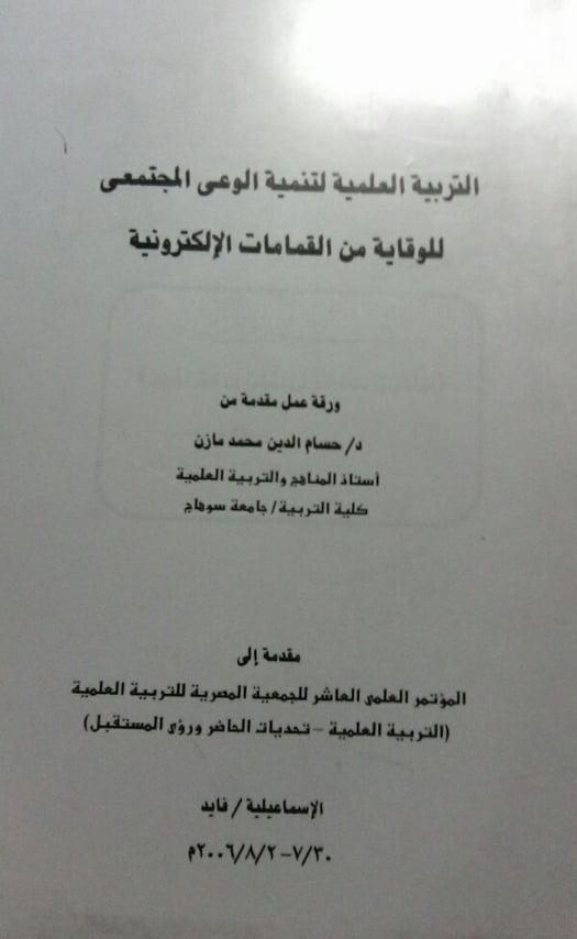 | المجلة | مجلد المؤتمر طرف الجمعية المصرية للتربية العلمية عام 2006م |