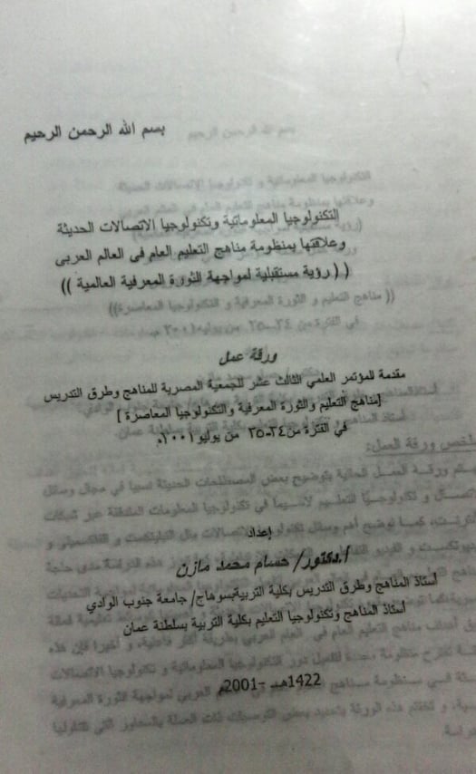ورقة عمل قدمت لمؤتمر الجمعية المصرية للمناهج وطرق التدريس 2001م