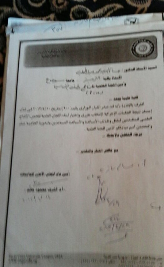 بالانتخاب الحر المباشر لاختيار مقرر وامين اللجنة -لجنة ترقيات اعضاء التدريس لدرجة استاذ في تخصصات المناهج وطرق التدريس وتكنولوجيا التعليم2013م لمدة ثلاث سنوات