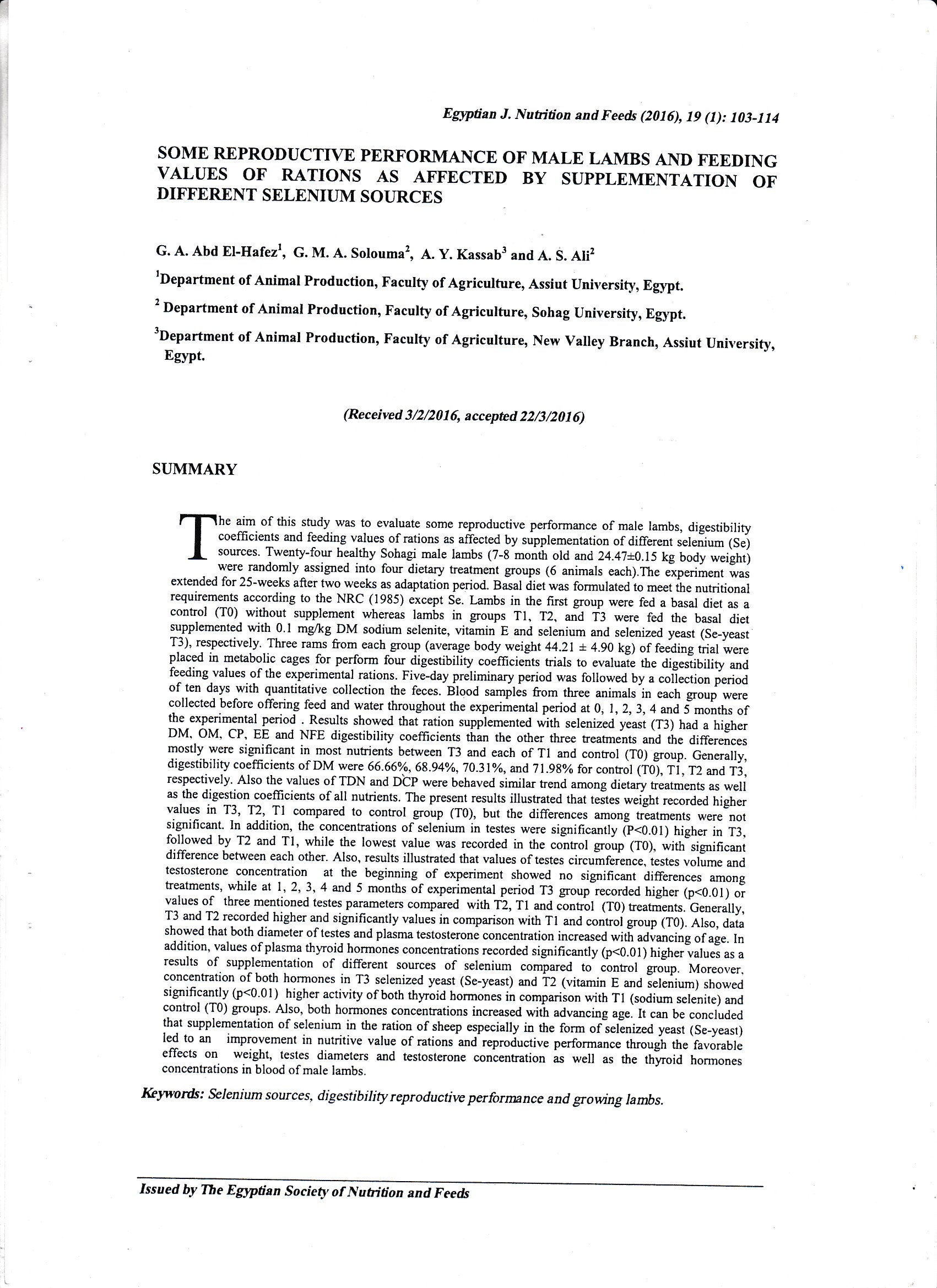 Keywords: Selenium sources, digestibility reproductive performance, growing lambs
