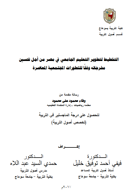التخطيط لتطوير التعليم الجامعي في مصر من أجل تحسين مخرجاته وفقًا للتطورات المجتمعية المعاصرة