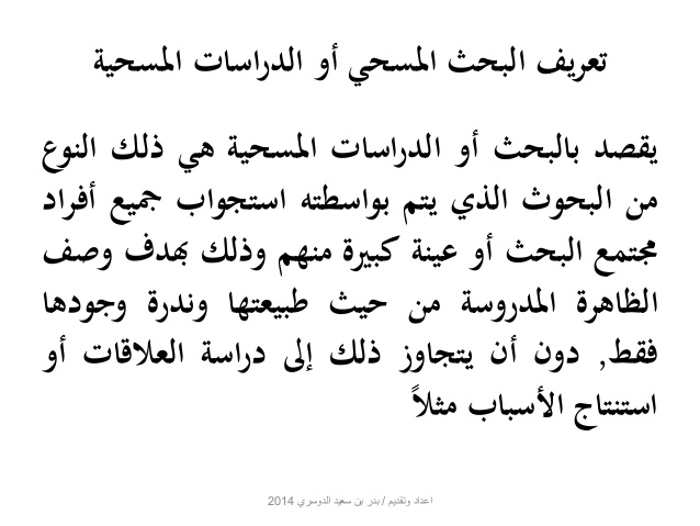 - يصعب الاعتماد علي المسح في إصدار تعميمات أو الوصول لنظريات علمية. (12-89)
