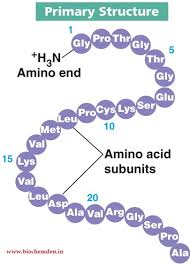 Protein primary structure is the linear sequence of amino acids in a peptide or protein. By convention, the primary structure of a protein is reported starting from the amino-terminal end to the carboxyl-terminal end.