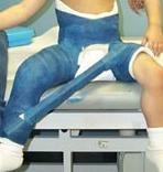 - molds along the distal femoral condyles and buttocks help to maintain reduction
