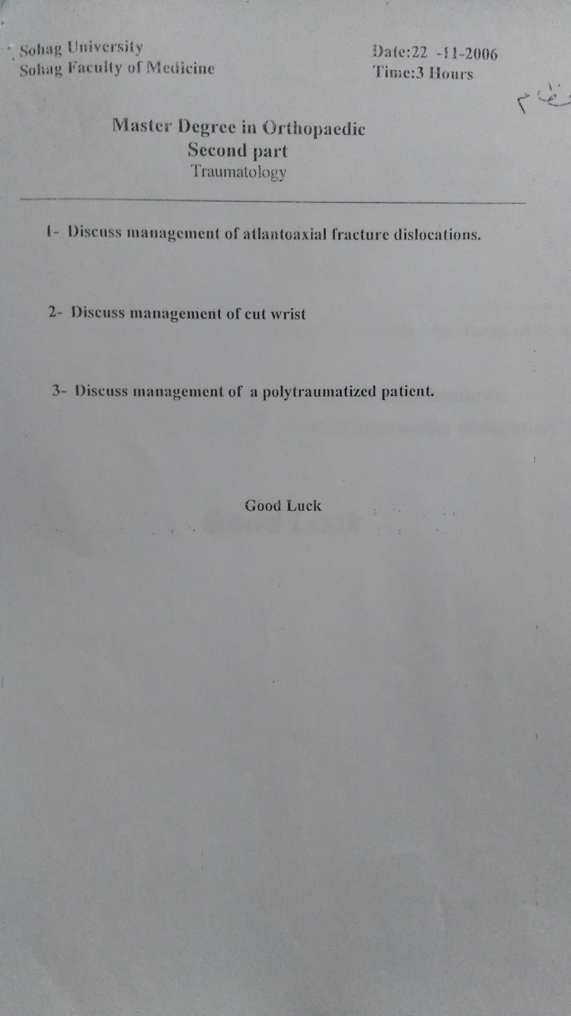 امتحان ماجستير جراحة العظام (علم الاصابات) - 2003