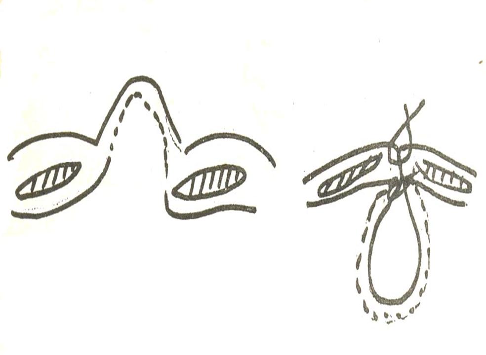 Using a longitudinal incision the peritoneum is identified and dissected down to the neck Without opening the sac it is pushed back in the abdomen, and by a series of inverting sutures the edges of the defect are closed