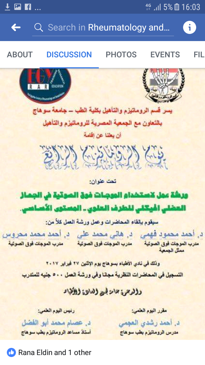 Egyptian society of rheumatology and rehabilitation , Sohag University 4th annual conference, Basic muscloskeletal US of Upper limb