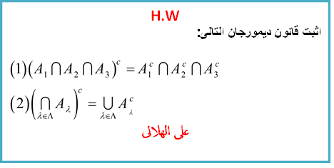 التاسك مكون من مسالتين يعتبروا تعميم لقانونى ديمورجان لمجموعتين والذى تم اثباته فى السكشن