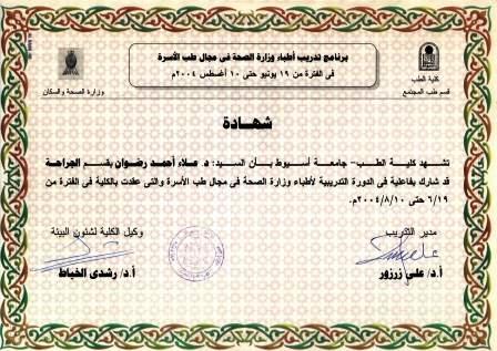 نظمت اداره كليه طب أسيوط والمستشفيات الجامعيه التابعه لها بالاشتراك مع مديريات الصحه بسوهاج وأسيوط الورشه العلميه الاولى لتدريب اطباء الاسره على الرعايه الطبيه الاوليه الباطنيه والجراحيه وكذا أخلاقيات المهنه وادابها المختلفه وذلك فى الفتره من 19/6 وحتى 10/8 من عام 2004م بمديريات الصحه بكلا من محافظه سوهاج ومحافظه أسيوط
